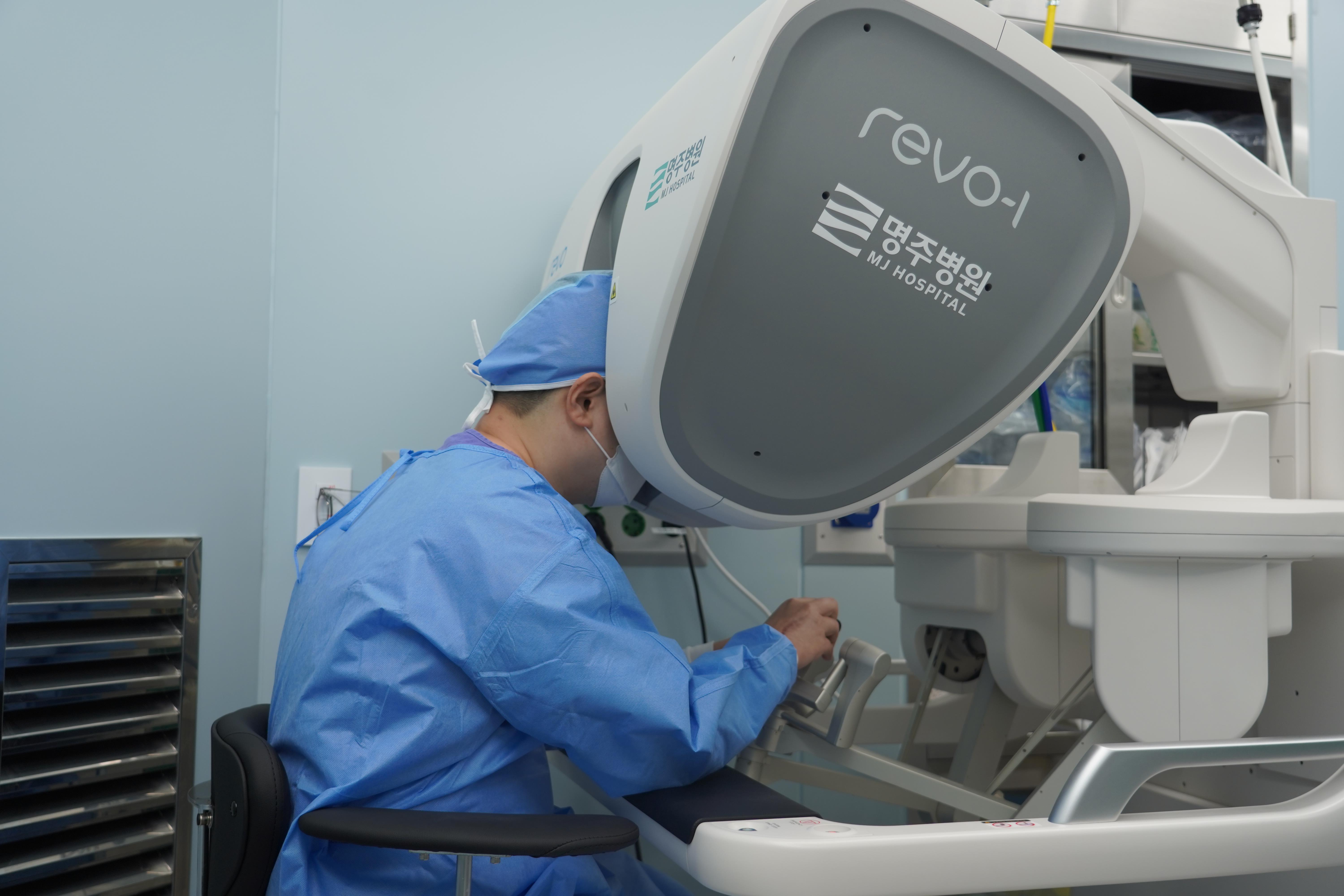 (명주병원 김성룡 로봇수술센터장의 로봇수술치료 장면)